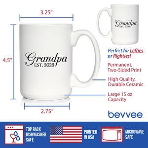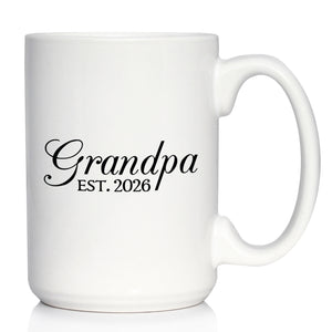 Grandpa Est 2026 - Coffee Mug - New Grandfather Gift for First Time Grandparents - Decorative White Ceramic Coffee Cup